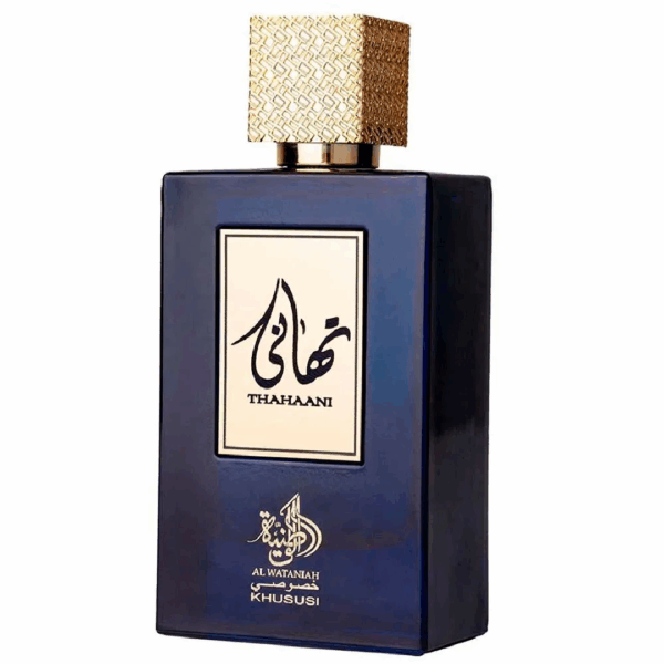 Thahaani de Al Wataniah é um perfume Âmbar Especiado Compartilhável. Esta é uma nova fragrância. Thahaani foi lançada em 2022. As notas de topo são: Pêssego, Rosa, Osmanthus, Peônia, Folhas de Violeta e Aldeídos. As notas de coração são: Tuberosa, Flor de Laranjeira, Heliotrópio, Rosa e Ameixa. As notas de fundo são: Âmbar, Sândalo, Almíscar e Musgo de Carvalho.